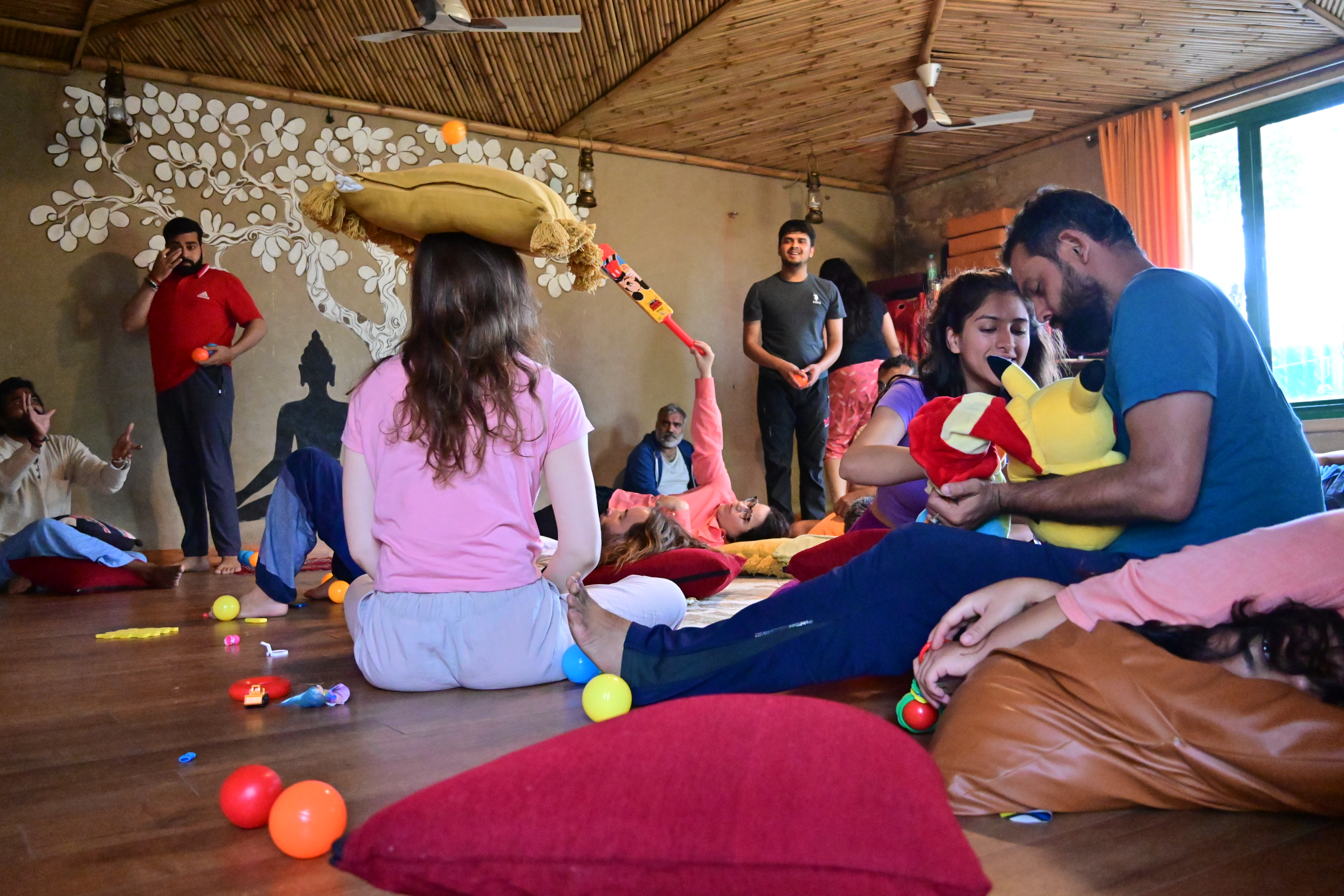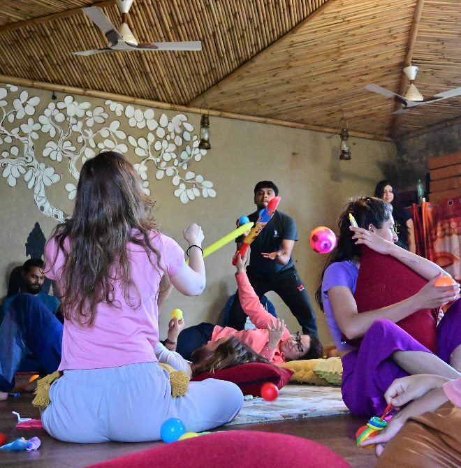 Our Inner Child Retreat is happening at Osho’s Maikada, in Rishikesh. This beautiful retreat center offers quiet rooms, a beautiful pool for midday swims, and open lawns shaded by neem and mango trees. Just a short walk from the Ganga, this meditative haven is surrounded by nature, nestled right in the lap of the Himalayas.